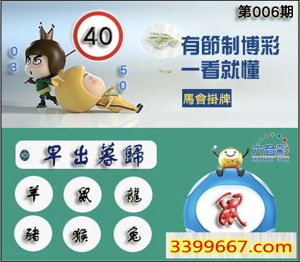 | 主题 :006期正版彩图挂:40 爆:鼠 挂牌成语:早出暮归 挂牌出肖:羊鼠龙猪 |