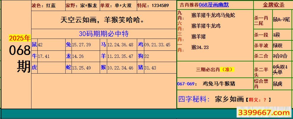 | 主题 :068期:小鱼儿30码期期中+幽默猜测 |