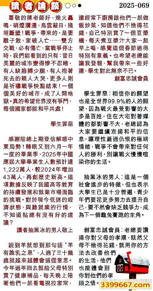 2.感謝貼總上期登信解惑中東局勢!轉眼又到六月一年一度的畢業季,2025年中國應屆大學畢業生人數預計達1,222萬人,較2024年增加43萬人,再創歷史新高。這項數據反映了我國高等教育的持續發展和就業市場面臨的挑戰。對於現今低迷的經濟狀態,與難就業的行情,不知道貼總有沒有好的建議?====讀者抽黑冰的男人敬上