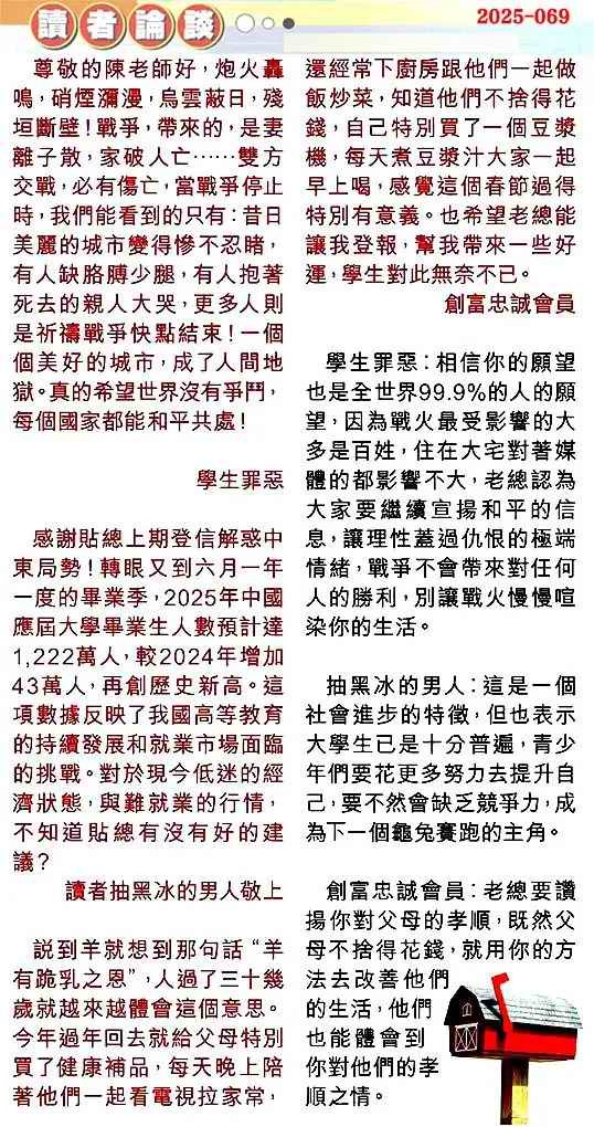 069期:彩民推荐贴信读者论坛