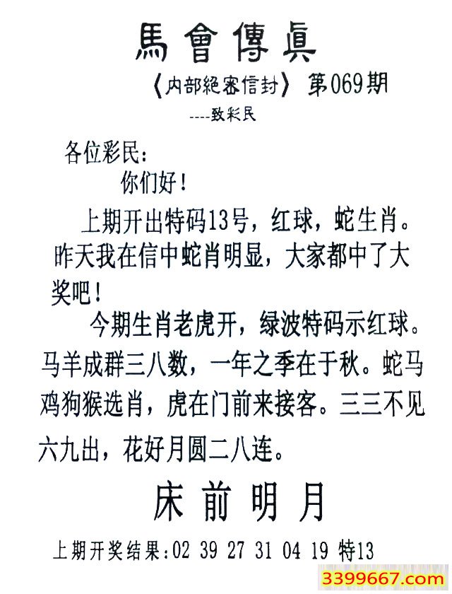 | 主题 :069期:首发推荐:≮馬會傳眞≯→(香港正版) |