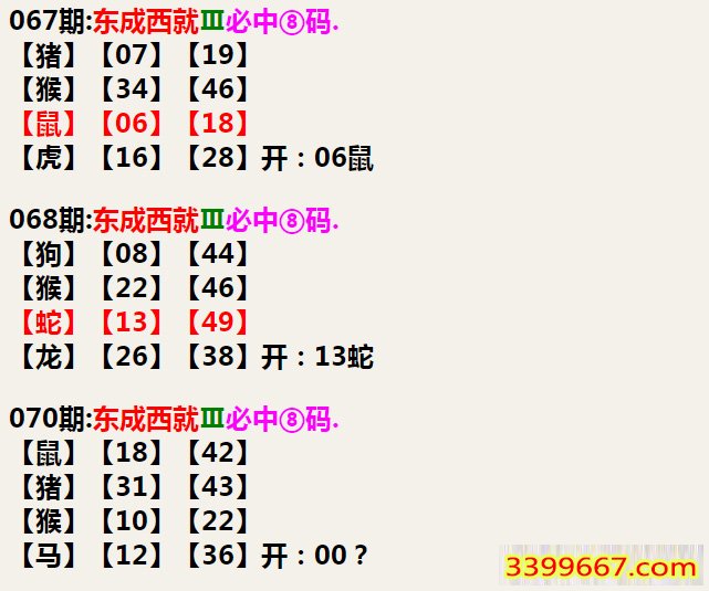 | 主题 :070期:东成西就Ⅲ必中⑧码 |