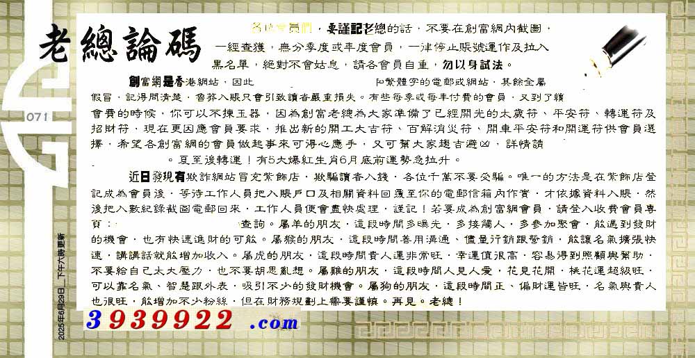 071期:六合皇金句/老总论码/萧公子/林大师/五行夺码/老总信箱截
