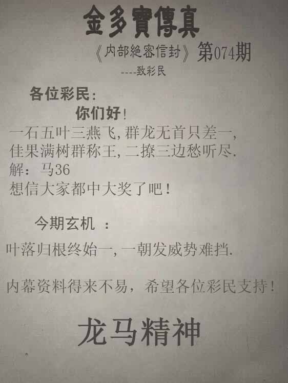 | 主题 :074期:金多寶傳真 |