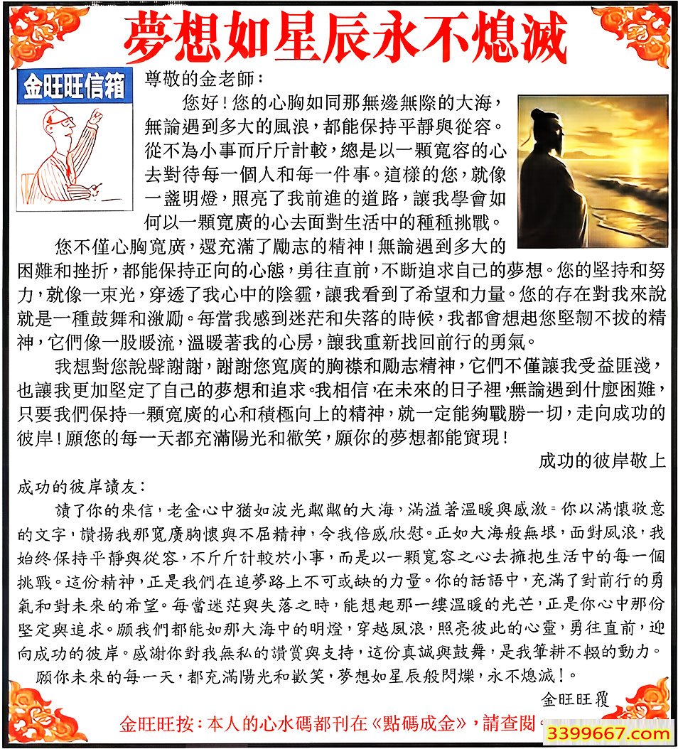 主题 :109期:金旺旺信箱彩民推荐→→《夢想如星辰永不熄滅》 |