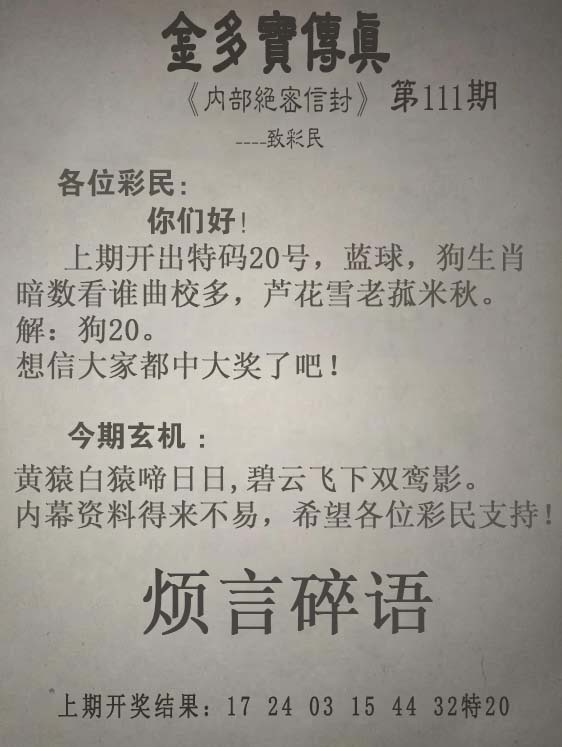111期:另版【金多寶傳真】