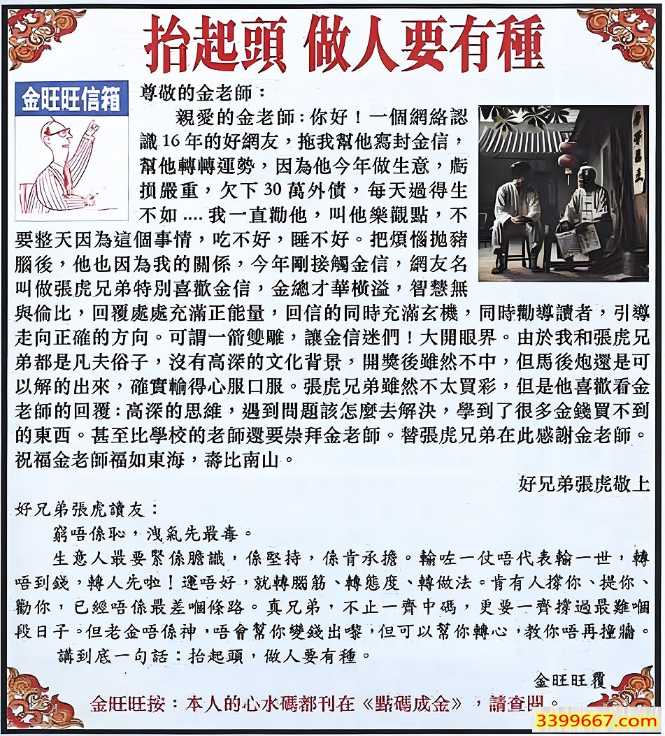 120期:金旺旺信箱彩民推荐→→《抬起頭 做人要有種》