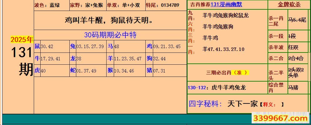主题 :131期:小鱼儿30码期期中+幽默猜测