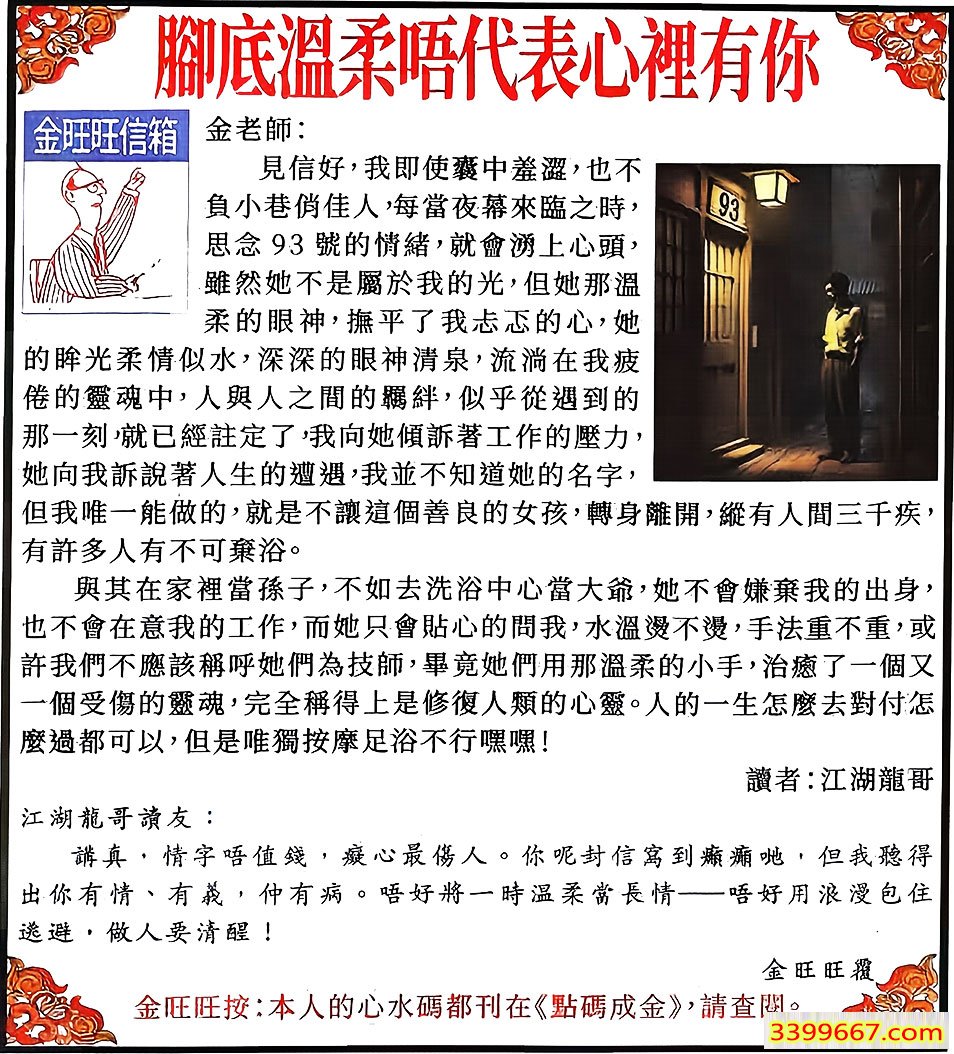 007期:金旺旺信箱彩民推荐→→《腳底溫柔唔代表心裡有你》