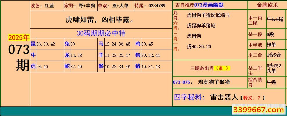 主题 :073期:小鱼儿30码期期中+幽默猜测