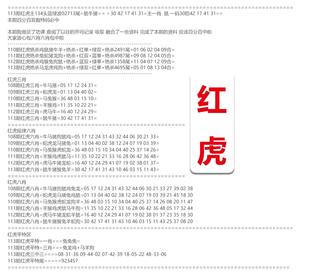 | 主题 :113期:红虎资料 |