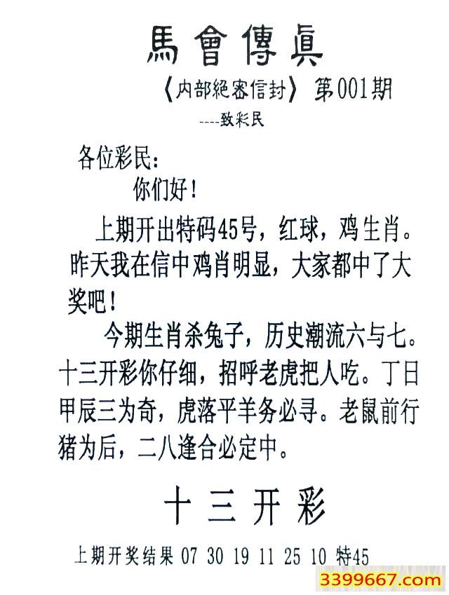 | 主题 :001期:首发推荐:≮馬會傳眞≯→(香港正版) |