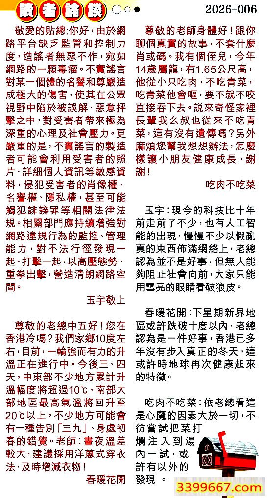 | 主题 :006期:彩民推荐〖貼信讀者論壇〗 |