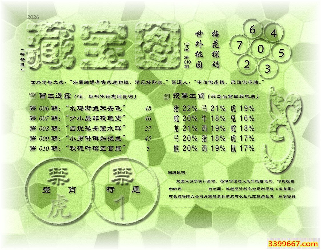 | 主题 :010期藏寶圖 新:同向尘中叁拾载 老:秋槐叶落空宫里 禁:虎 禁:1尾 |