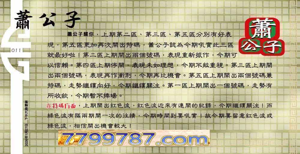 | 主题 :011期:六合皇金句/老总论码/萧公子/林大师/五行夺码/老总信箱截 |