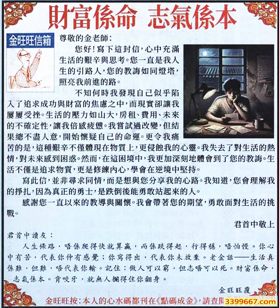 | 主题 :015期:金旺旺信箱彩民推荐→→《財富係命 志氣係本》 |