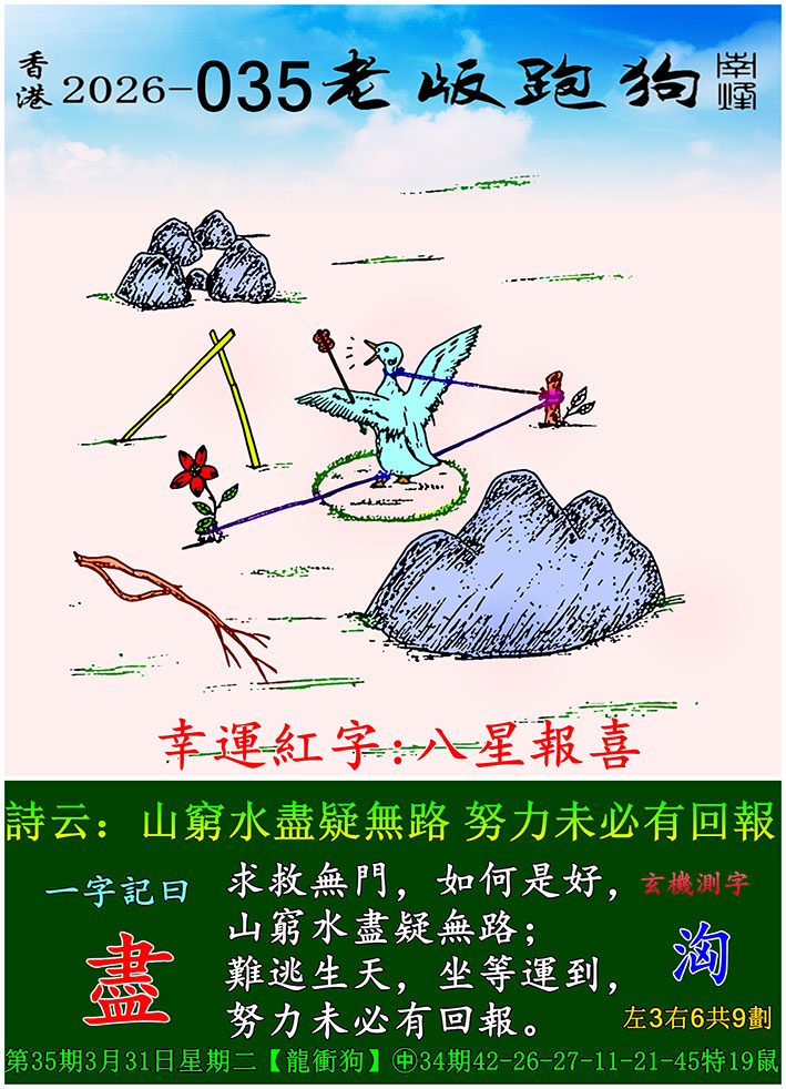 035期老版跑狗一字記之曰:【盡】