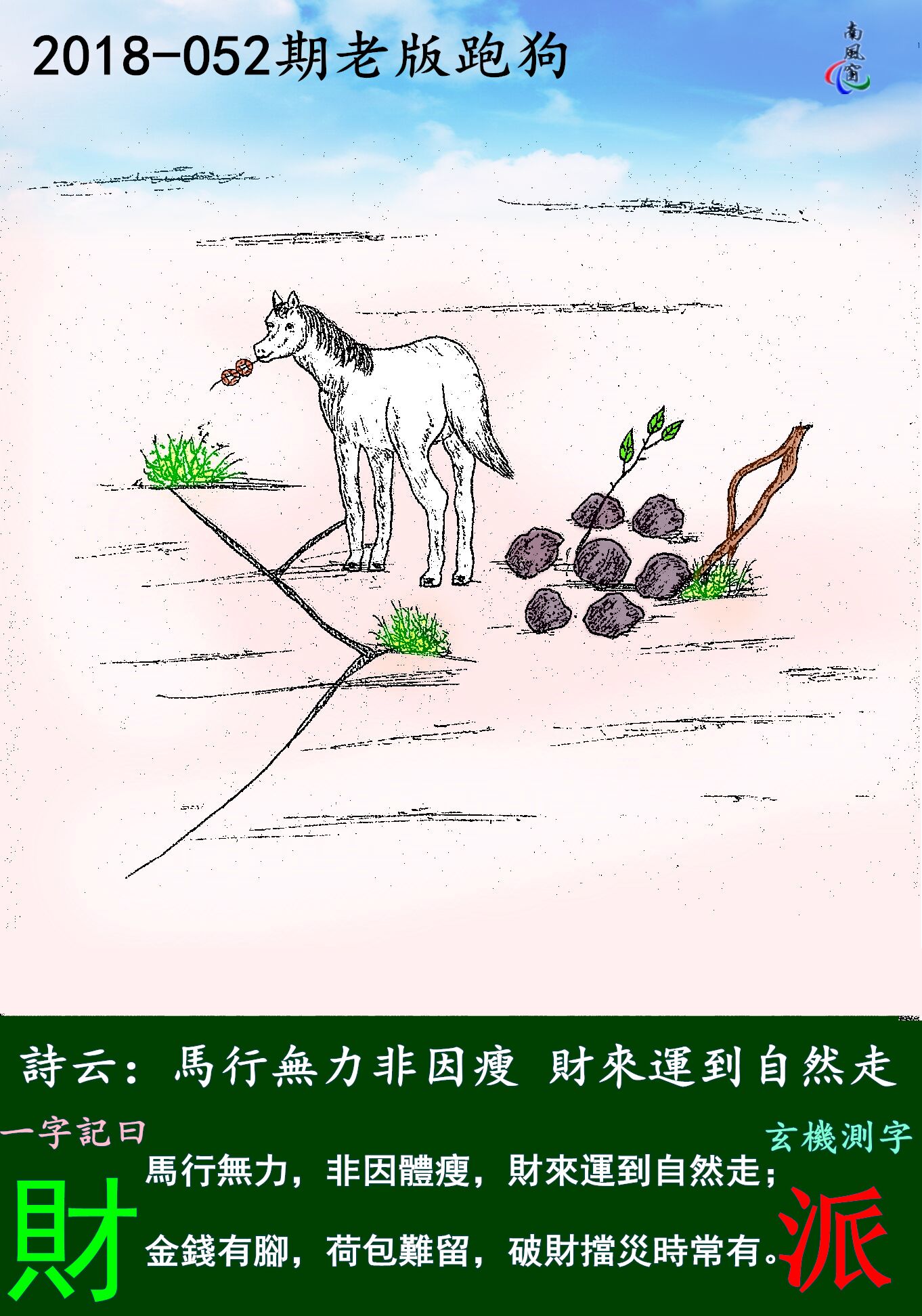052期:老版跑狗一字記之曰:【財】玄機測字《派》