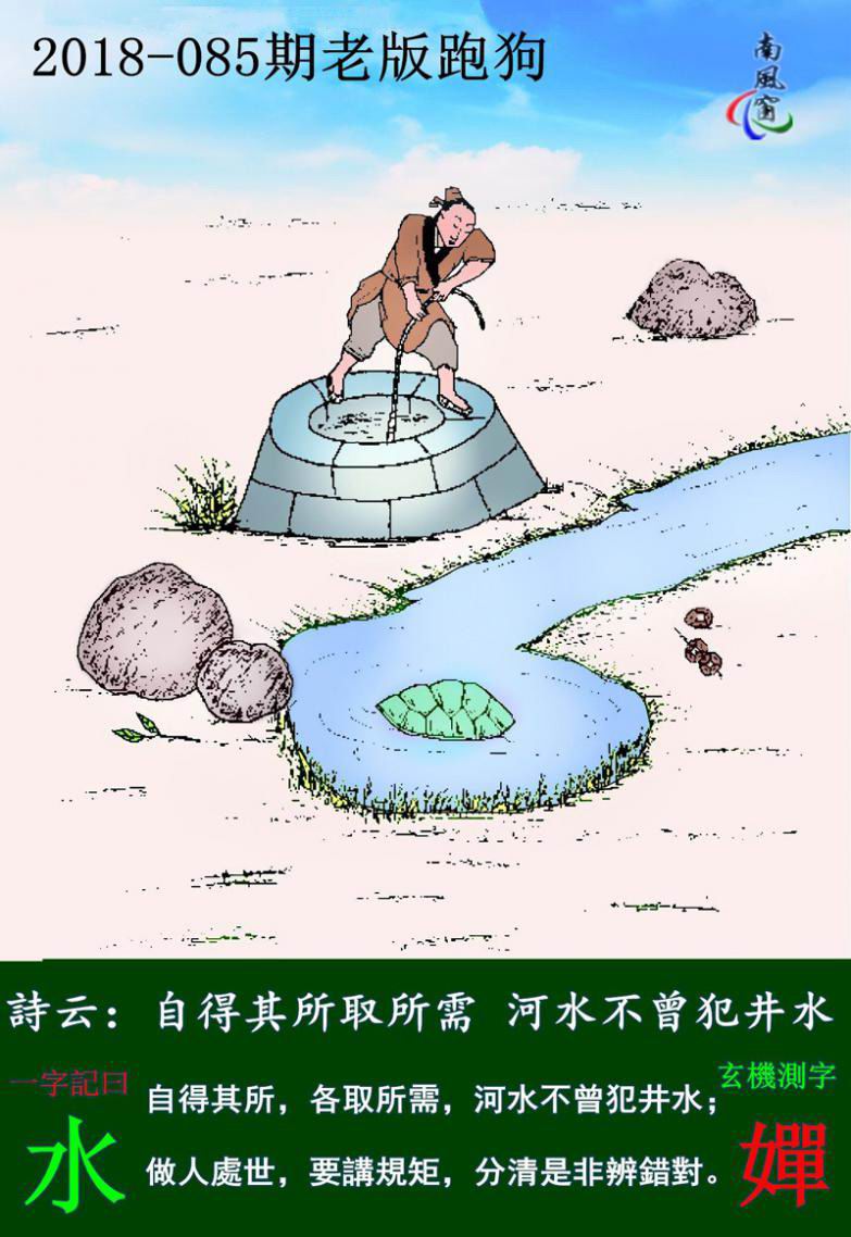 主题 : 085期:老版跑狗一字記之曰:【水】玄機測字《嬋》
