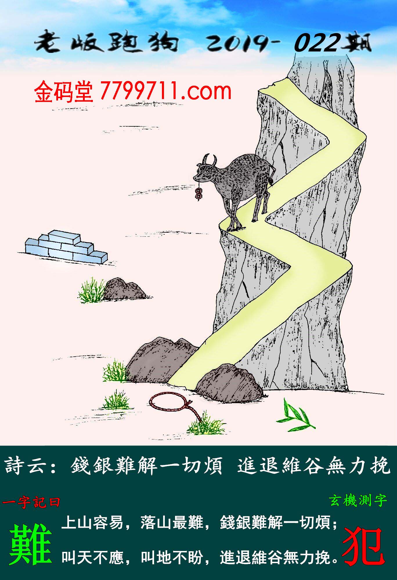 022期:老版跑狗一字記之曰【難】玄機測字《犯》