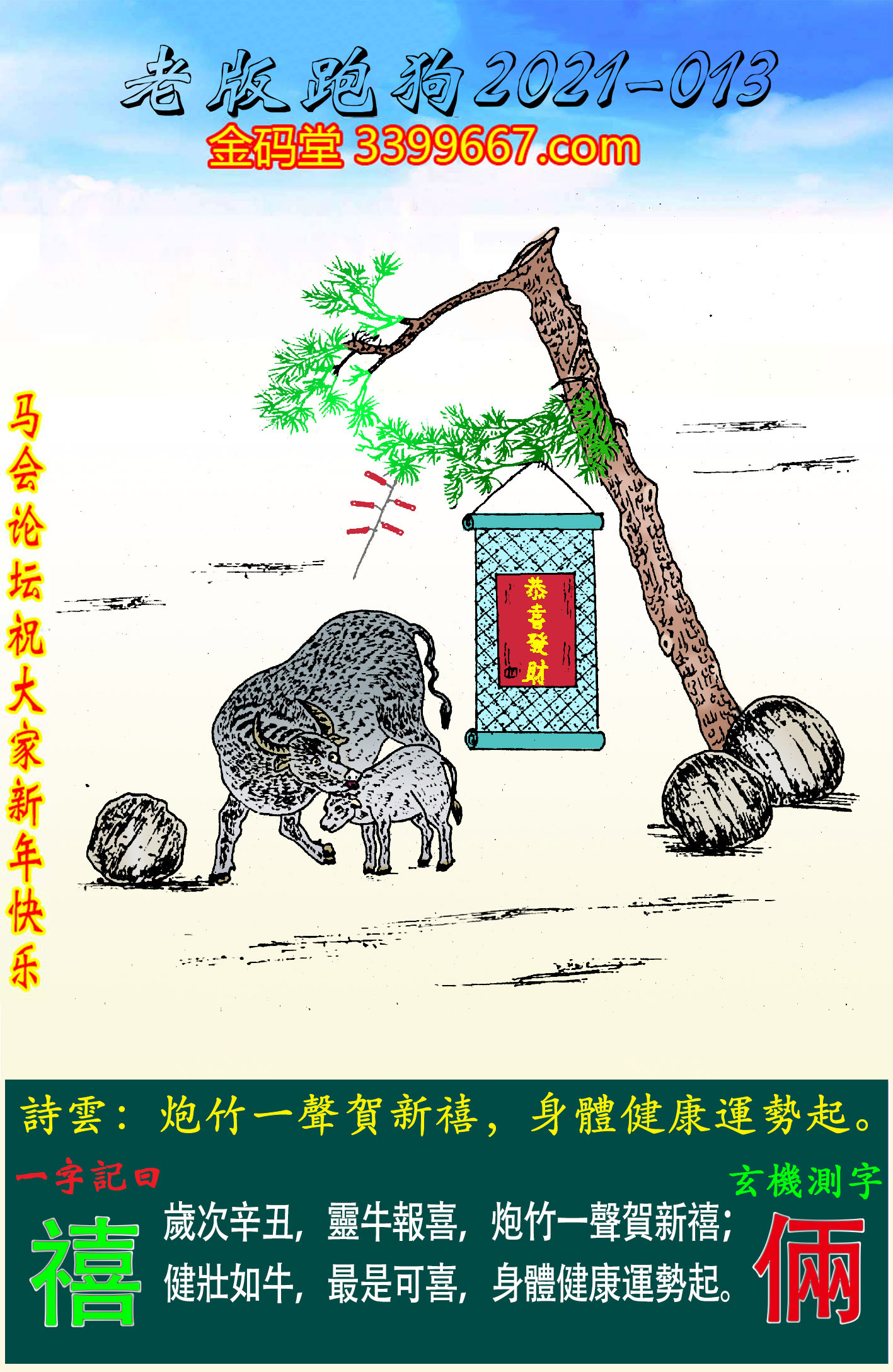 歲次辛丑,靈牛報喜,炮竹一聲賀新禧;