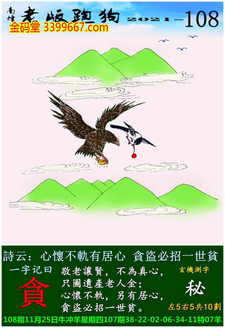 主题 : 108期老版跑狗一字記之曰:【貪】玄機測字:《秘》