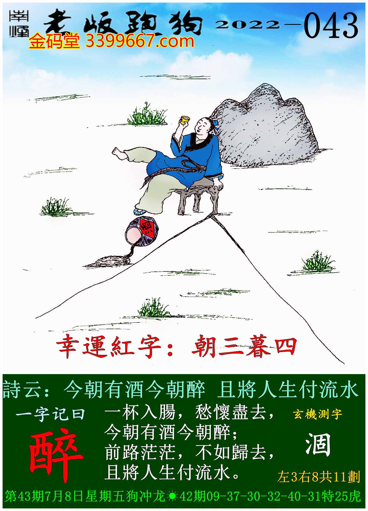 主题 : 043期老版跑狗一字記之曰:【醉】玄機測字:《涸》