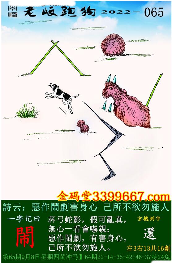 065期老版跑狗一字記之曰:【閙】