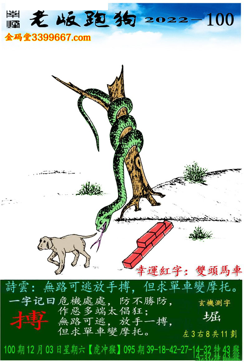 100期老版跑狗一字記之曰:【搏】