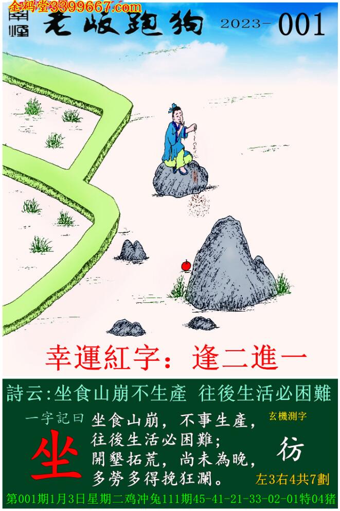 主题 : 001期老版跑狗一字記之曰:【坐】 玄機測字:《彷》