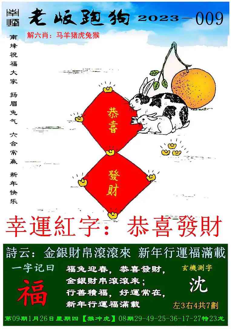 009期老版跑狗一字記之曰:【福】