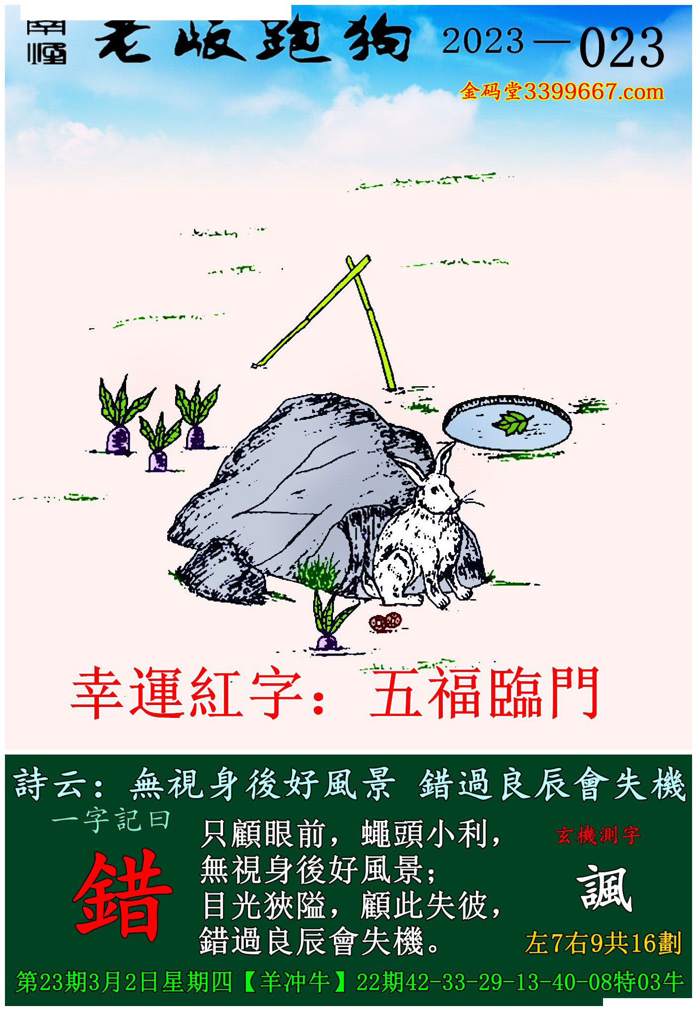023期老版跑狗一字記之曰:【錯】