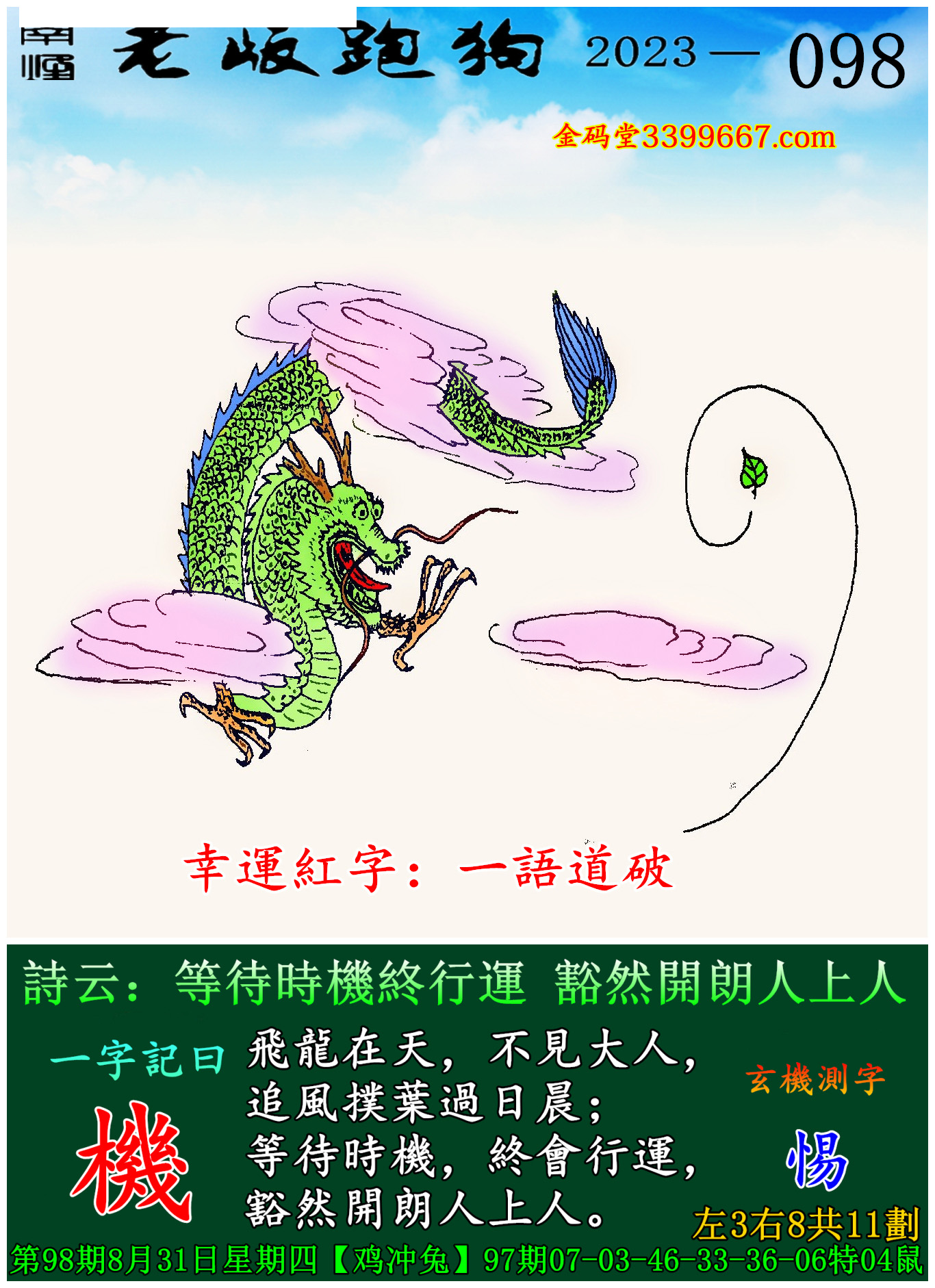 098期老版跑狗一字記之曰:【機】玄機測字:《惕》
