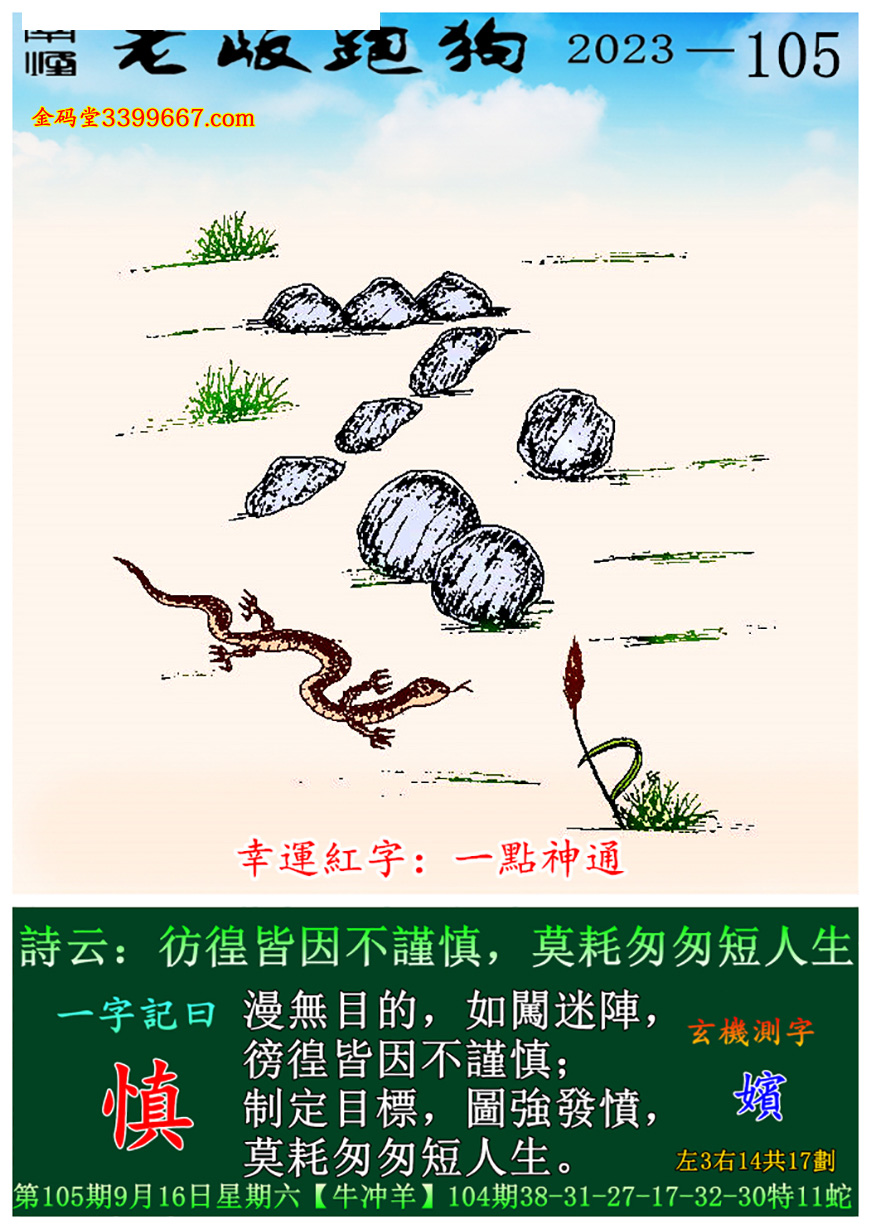 主题 : 105期老版跑狗一字記之曰:【慎】玄機測字:《嬪》