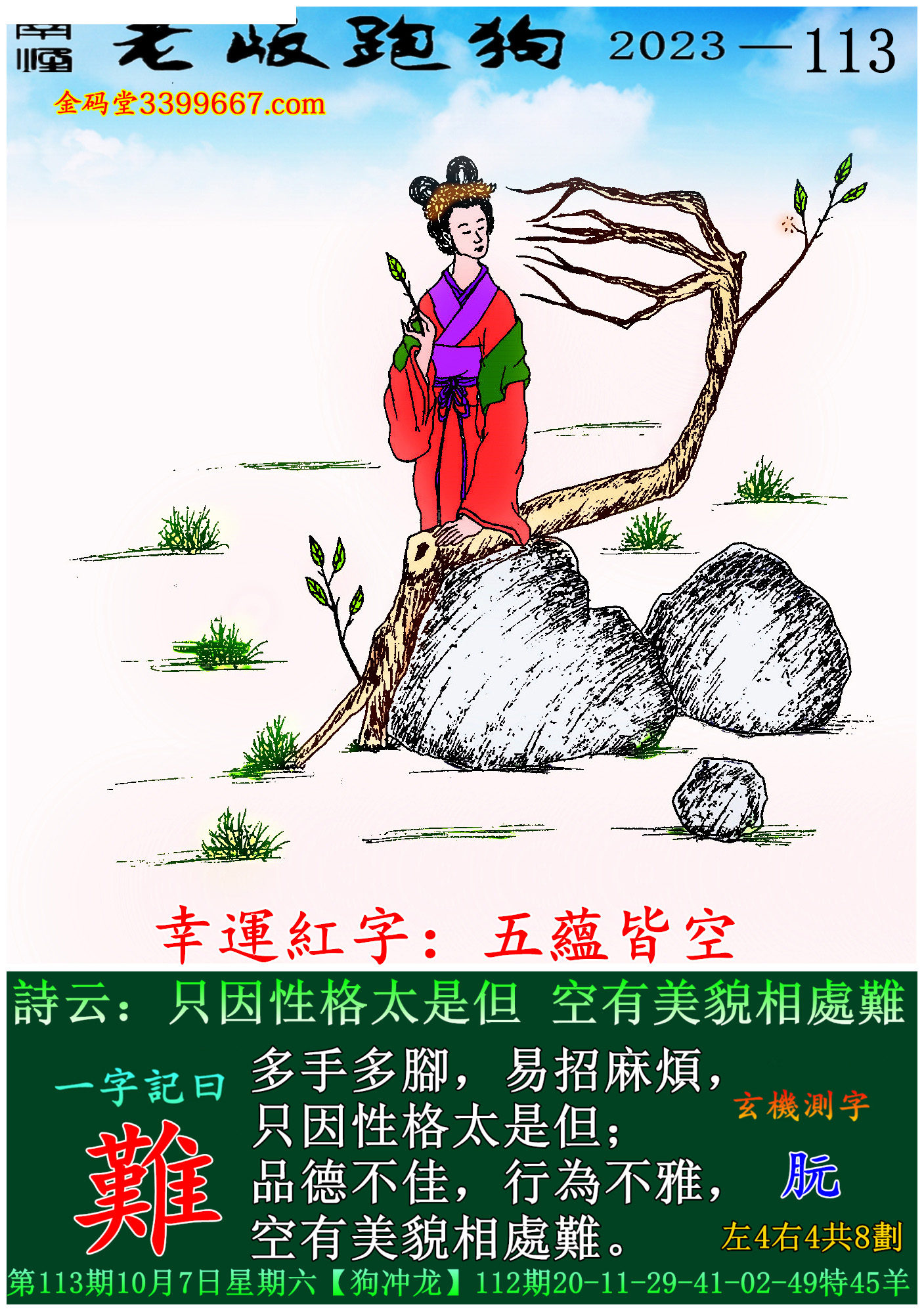 113期老版跑狗一字記之曰:【難】
