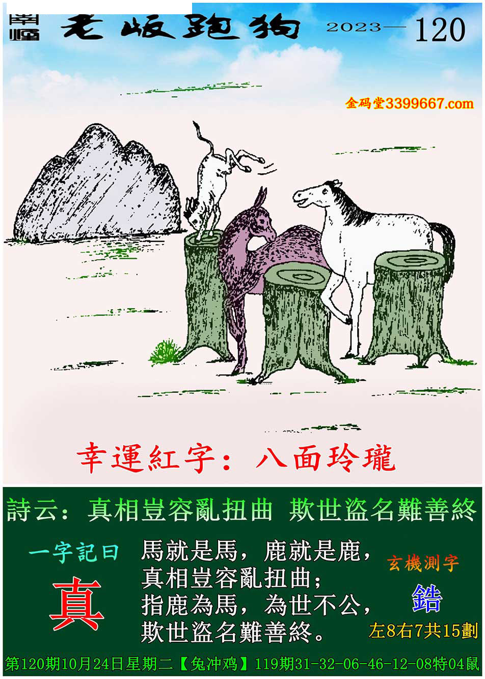 120期老版跑狗一字記之曰:【真】