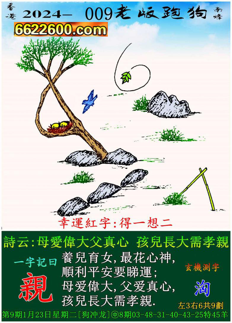 009期老版跑狗一字記之曰:【親】