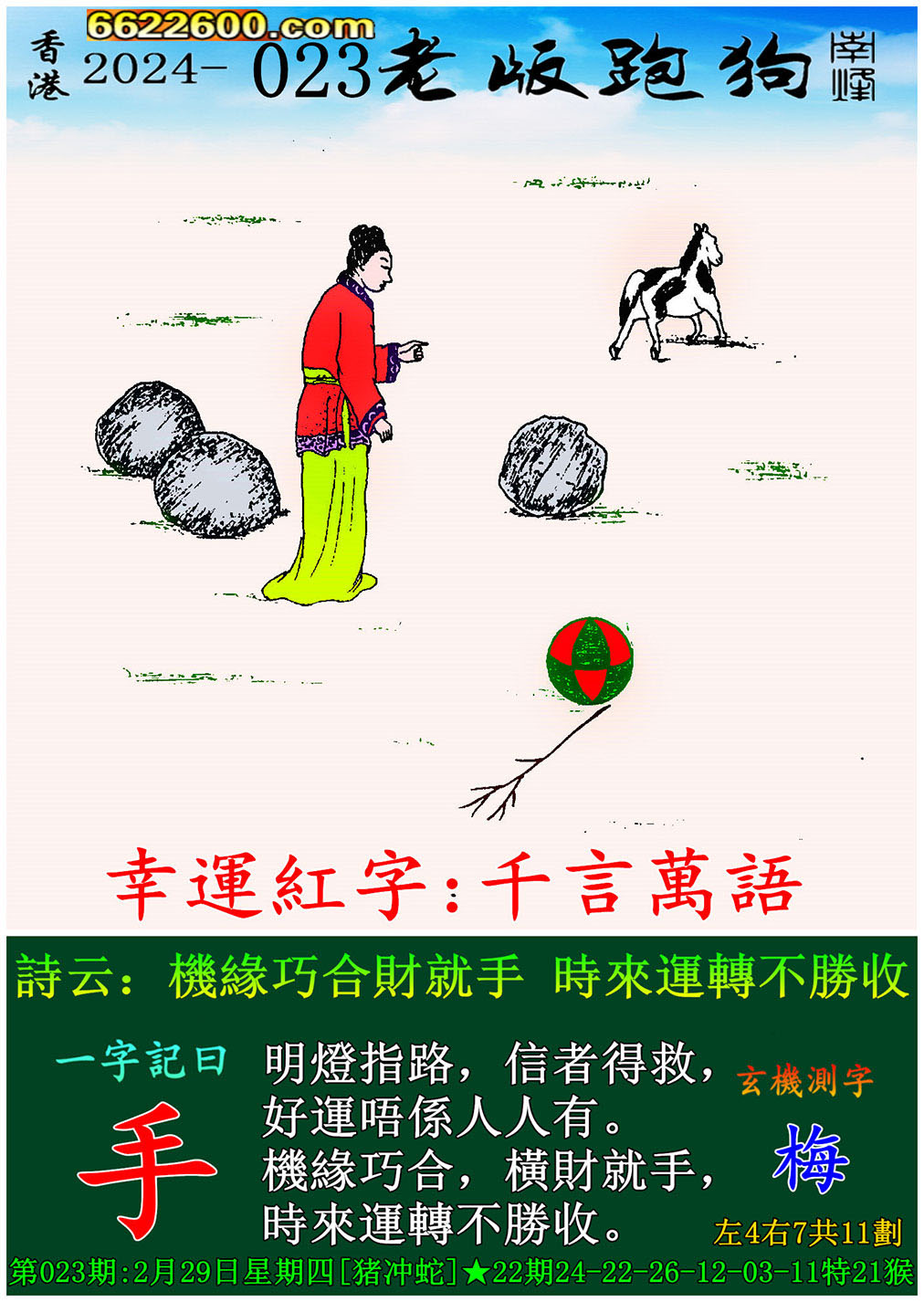 主题 : 023期老版跑狗一字記之曰:【手】 玄機測字:《梅》