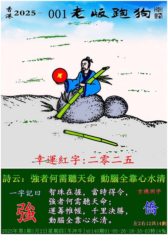 主题 : 001期老版跑狗一字記之曰:【強】 玄機測字:《僑》