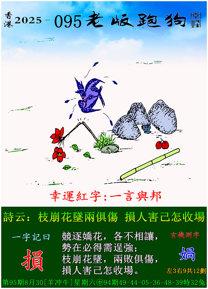 095期老版跑狗一字記之曰:【損】