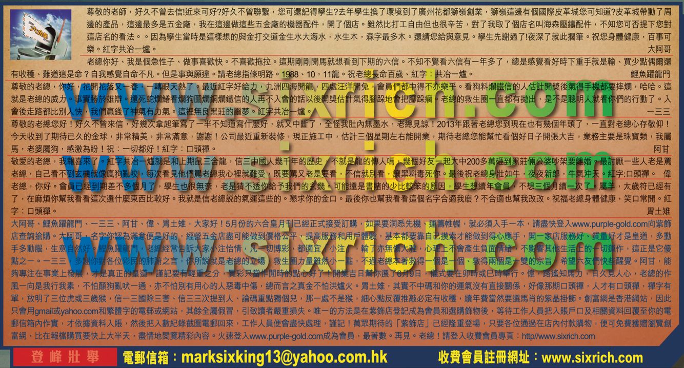 【2】老總你好、我是個急性子、做事喜歡快。不喜歡拖拉。這期剛剛開馬就想看到下期的六信。不知不覺看六信有一年多了,總是感覺看好時下重手就是翰、買少點偶爾還有收獲、難道這是命?自我感覺自命不凡。但是事與願違。請老總指條明路。1988、10,11龍。祝老總長命百歲、紅字:共冶一爐。 ---鯉魚躍龍門