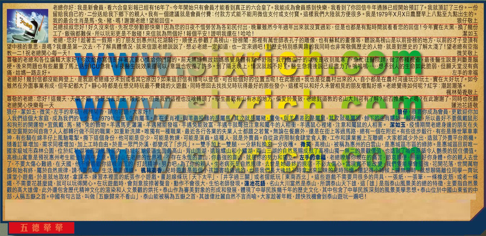 【2】.呂總叔叔您好!好久沒來信,先祝您勞動節快樂!因為您的日夜不惜勞苦為各彩民付出,晚輩雖然今年過年出來就沒買過彩,但是也都是有點時間就看看您的回信!今年實在太黑,换了幾份工了,飯碗都難保,所以玩彩更是不敢碰!來信就為問個好!報個平安!證明我還在!哈哈!  潔如玉