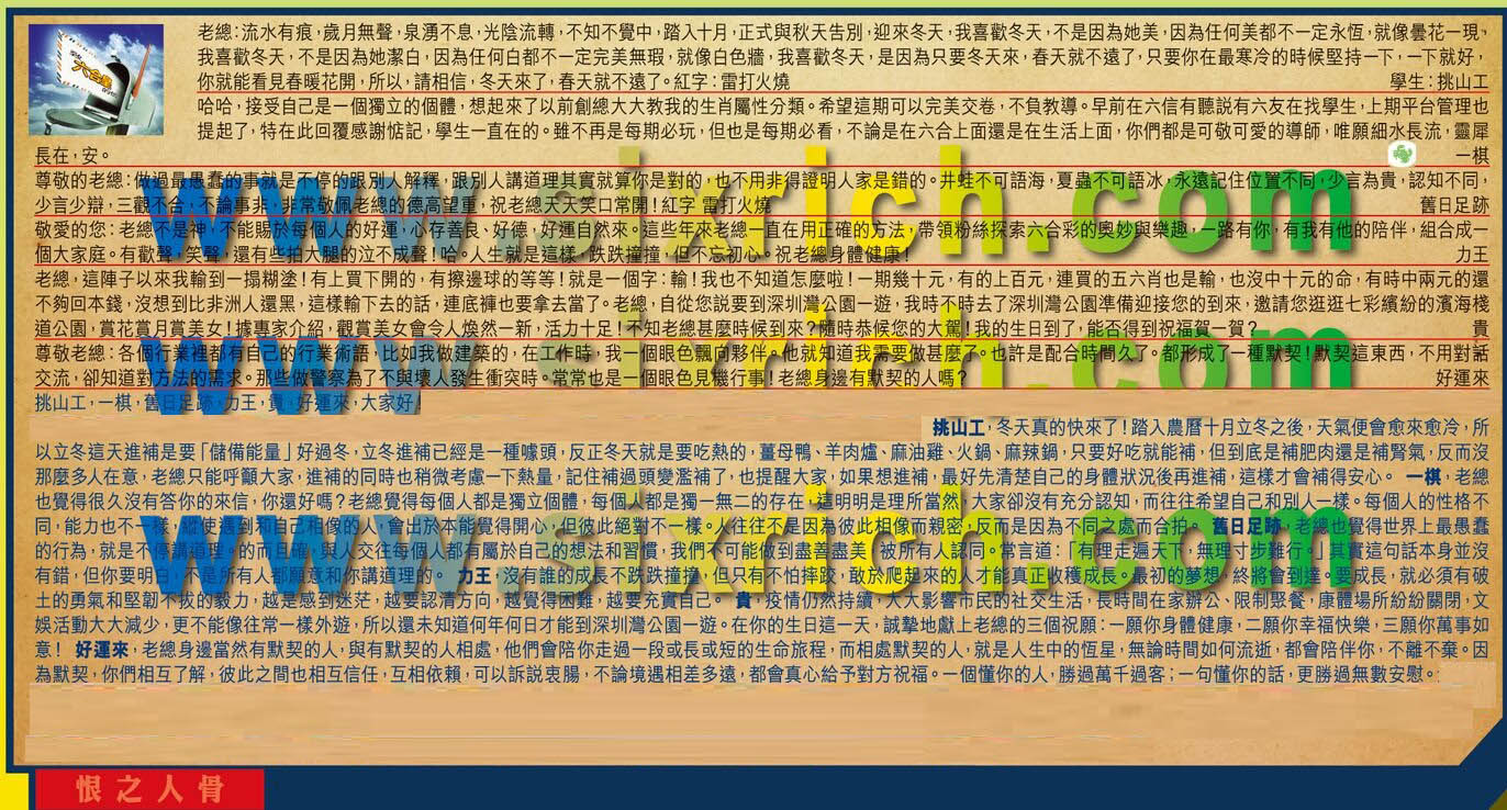 【2】.老總,非常感謝您的祝願!老總的祝願肯定是不一般的!但又讓我擠盡腦汁還是毫無頭緒。沒被您選中登信,就覺得很難過,被您登信了,就覺得更難過!從昨天到現在,不知道抄寫自己的信抄了多少遍,邊抄邊讀,還是一無所獲!快要急哭了!  貴