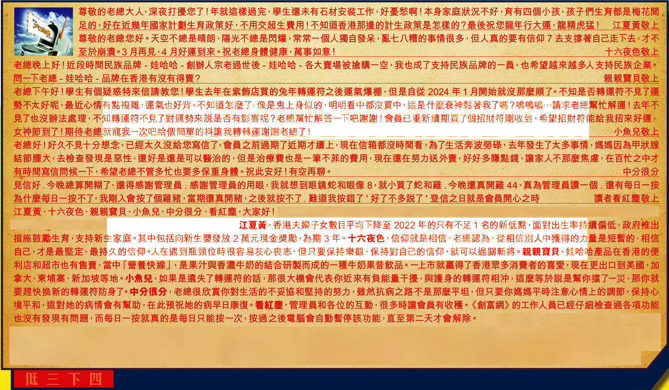 【5】.老總好!好久不見十分想念,已經太久沒給您寫信了,會員之前過期了近期才續上,現在信箱都沒時間看,為了生活奔波勞碌,去年發生了太多事情,媽媽因為甲狀腺結節腫大,去檢查發現是惡性,還好是還是可以醫治的,但是治療费也是一筆不菲的費用,現在還在努力送外賣,好好多賺點錢,讓家人不那麼焦慮,在百忙之中才有時間寫信問候一下,希望老總不管多忙也要多保重身體。祝此安好!有空再聊。 中分很分