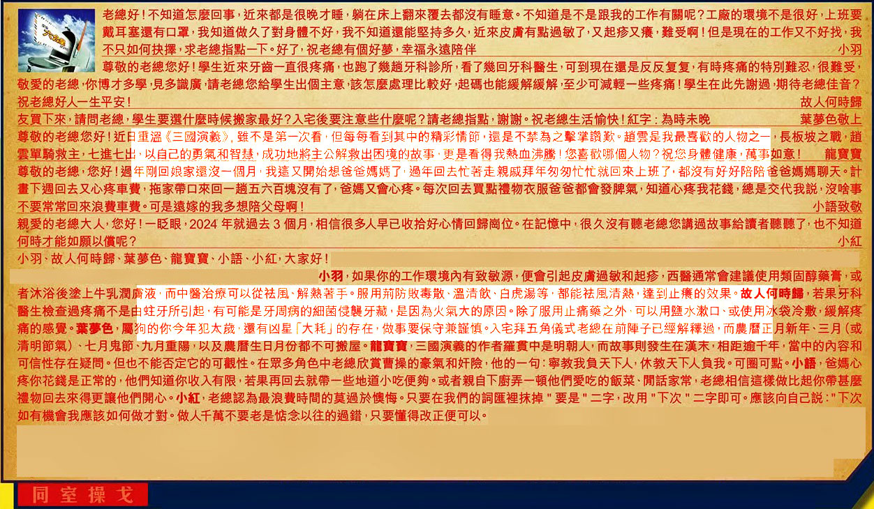 小羽、故人何時歸、葉夢色、龍寶寶、小語、小紅,大家好!