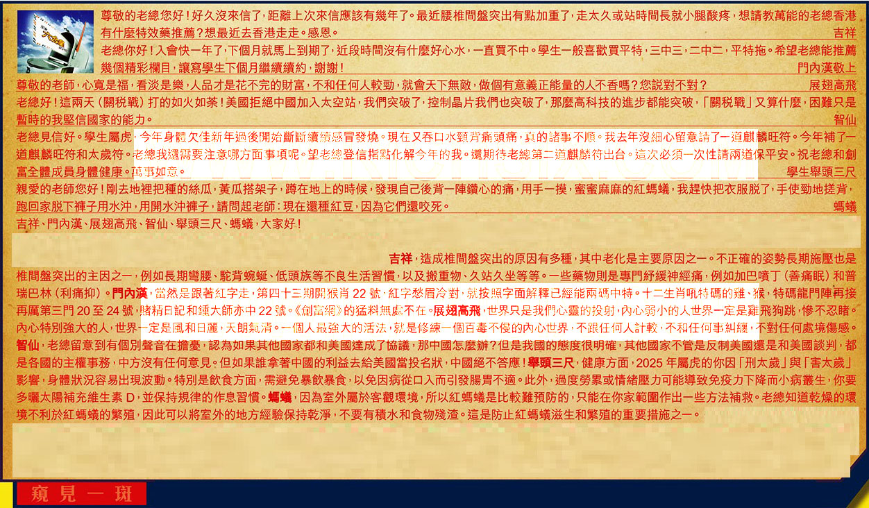 吉祥、門內漢、展翅高飛、智仙、舉頭三尺、螞蟻,大家好!