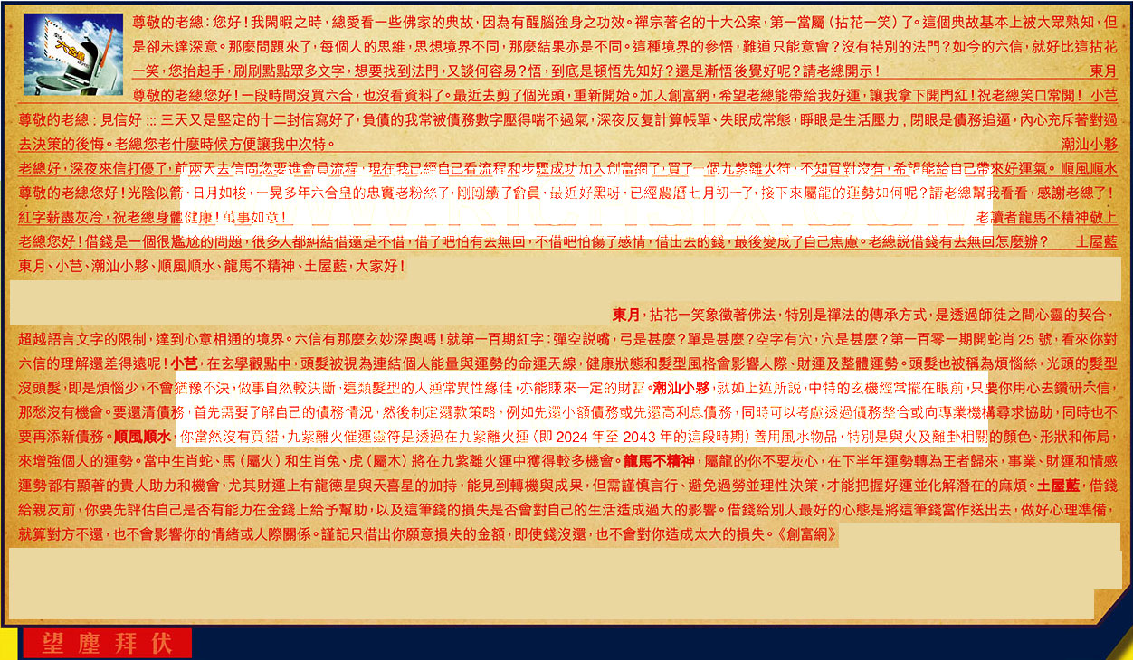 105期:彩民推荐六合皇信箱(紅字:望塵拜伏)