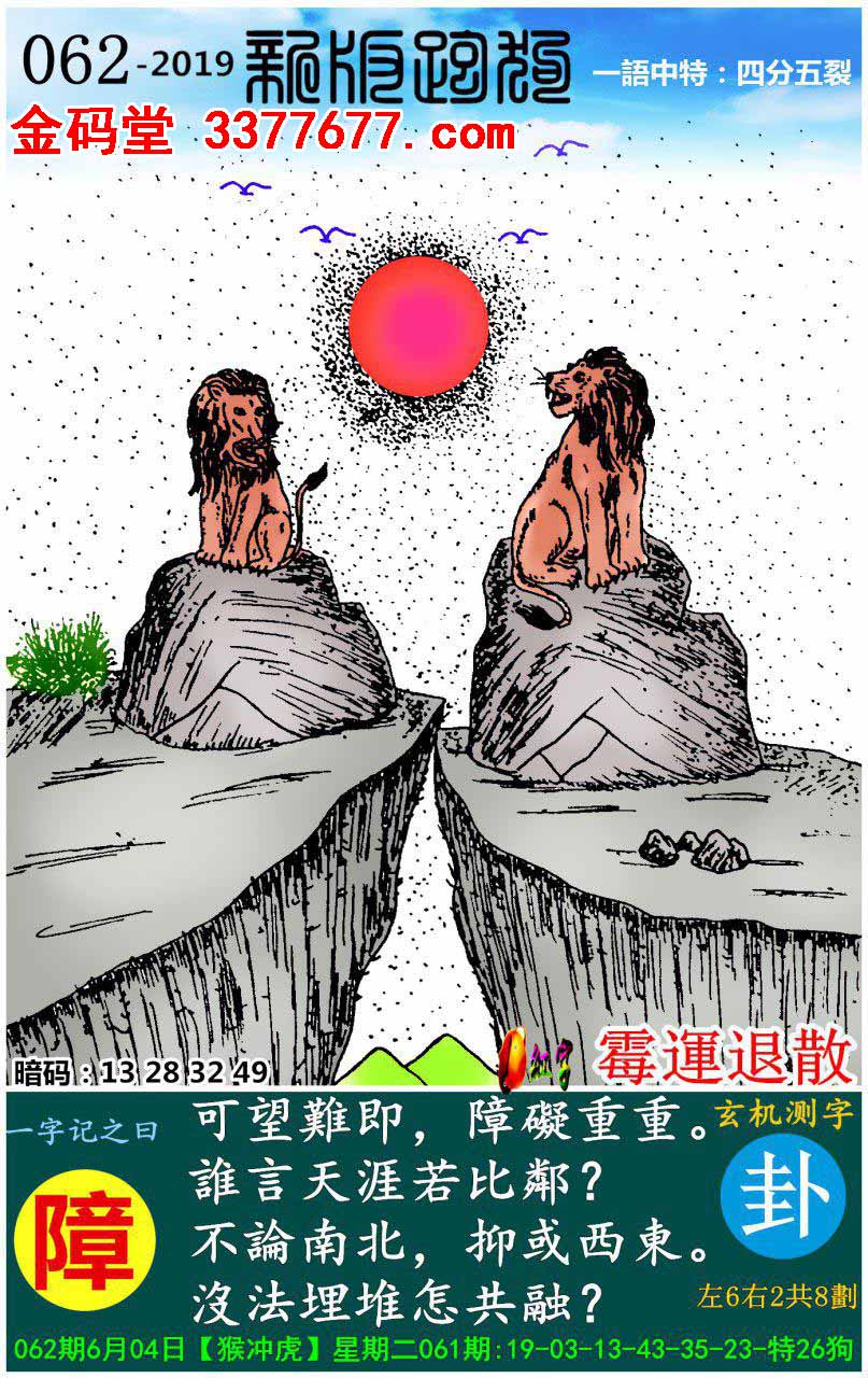062期新版跑狗一字記之曰:【障】