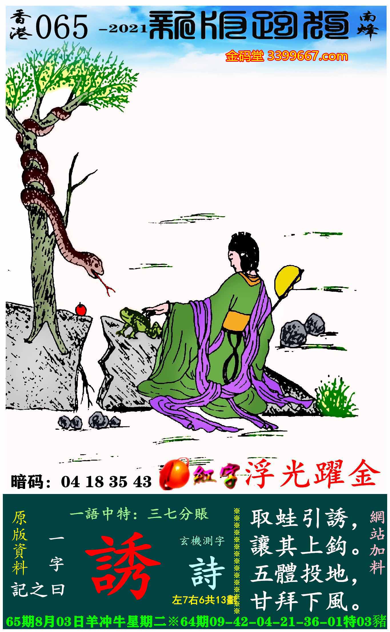 065期新版跑狗一字記之曰:【誘】