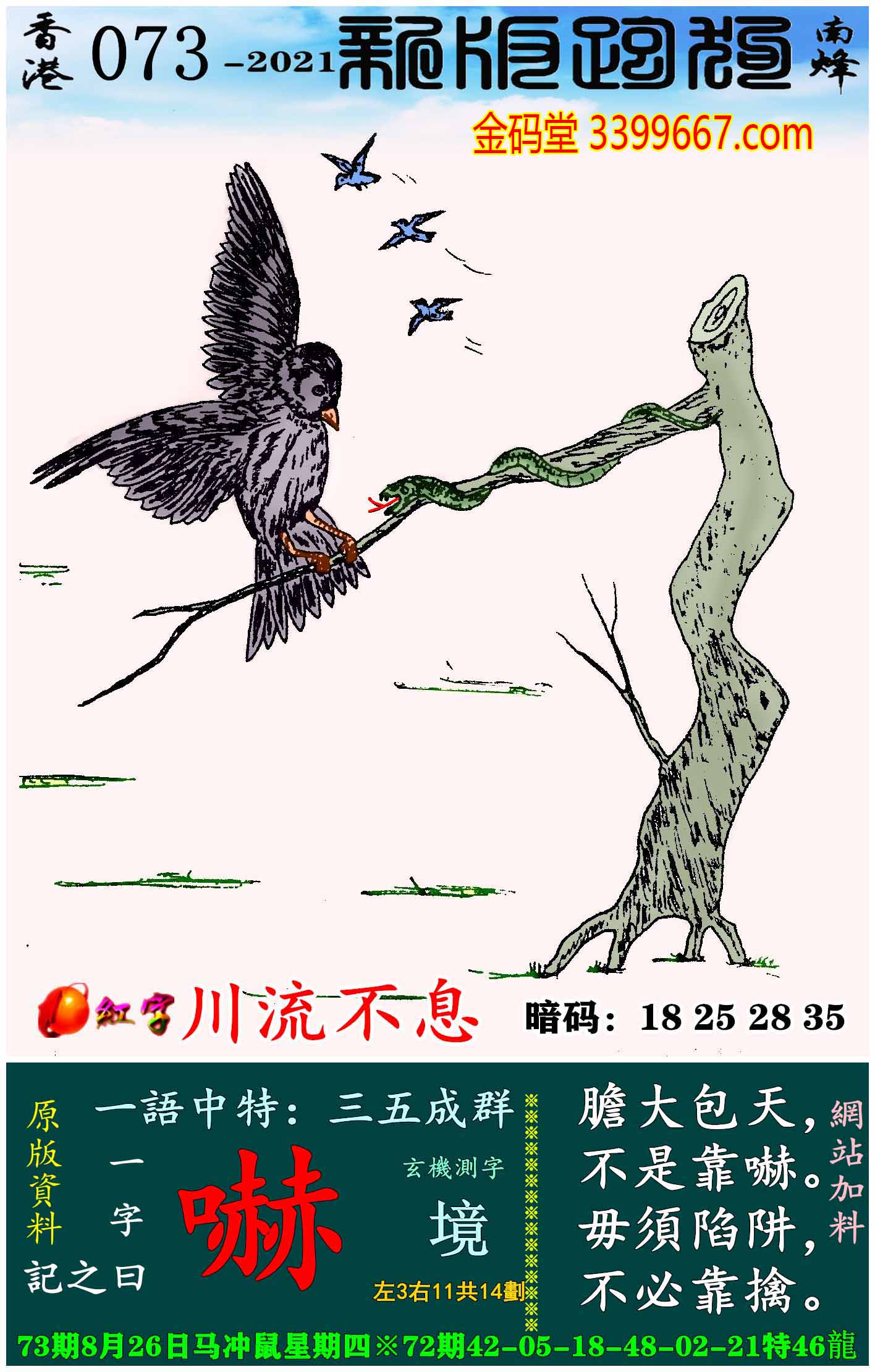 073期新版跑狗一字記之曰:【嚇】